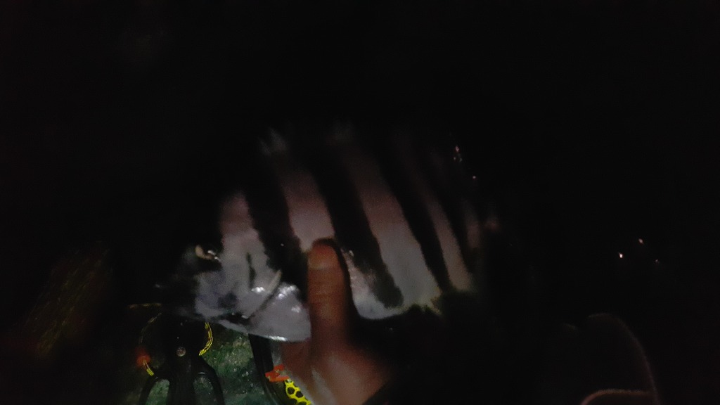 날이 완전히 어두워지고 피싱킹아우 돌돔(뻰치) 한마리 포획