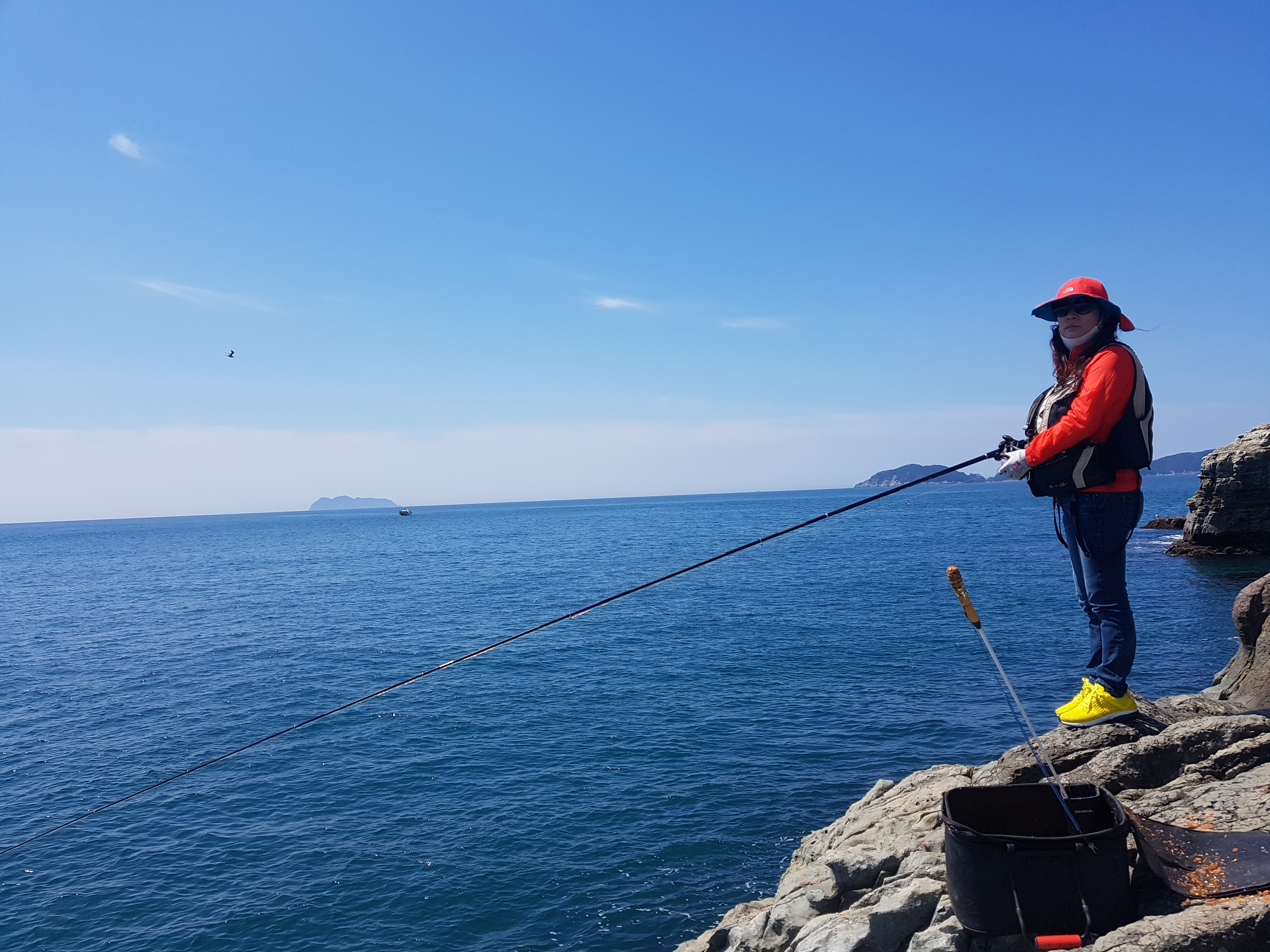 오후 시간대 참돔 한마리 포획하기 위해 낚시를 해보지만 올라오는 건